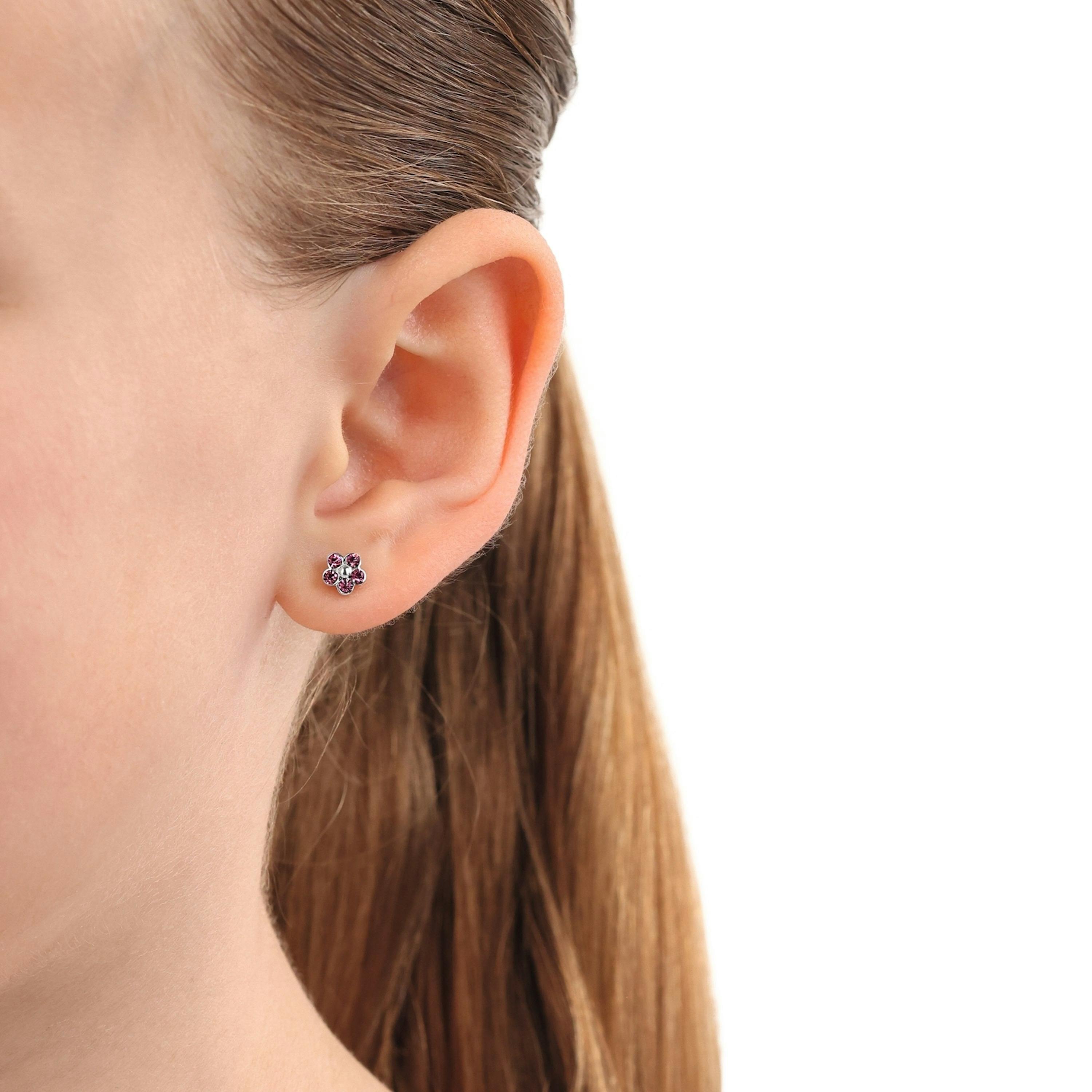 - Die zierlichen Ohrstecker Mädchen Silber 925 sind verziert mit strahlenden Kristall Steinen. Ein Ohrring, der Kinderaugen strahlen lässt. Die Kinderohrringe mit Blumen-Motiv kommen in einer passenden Schmuckbox