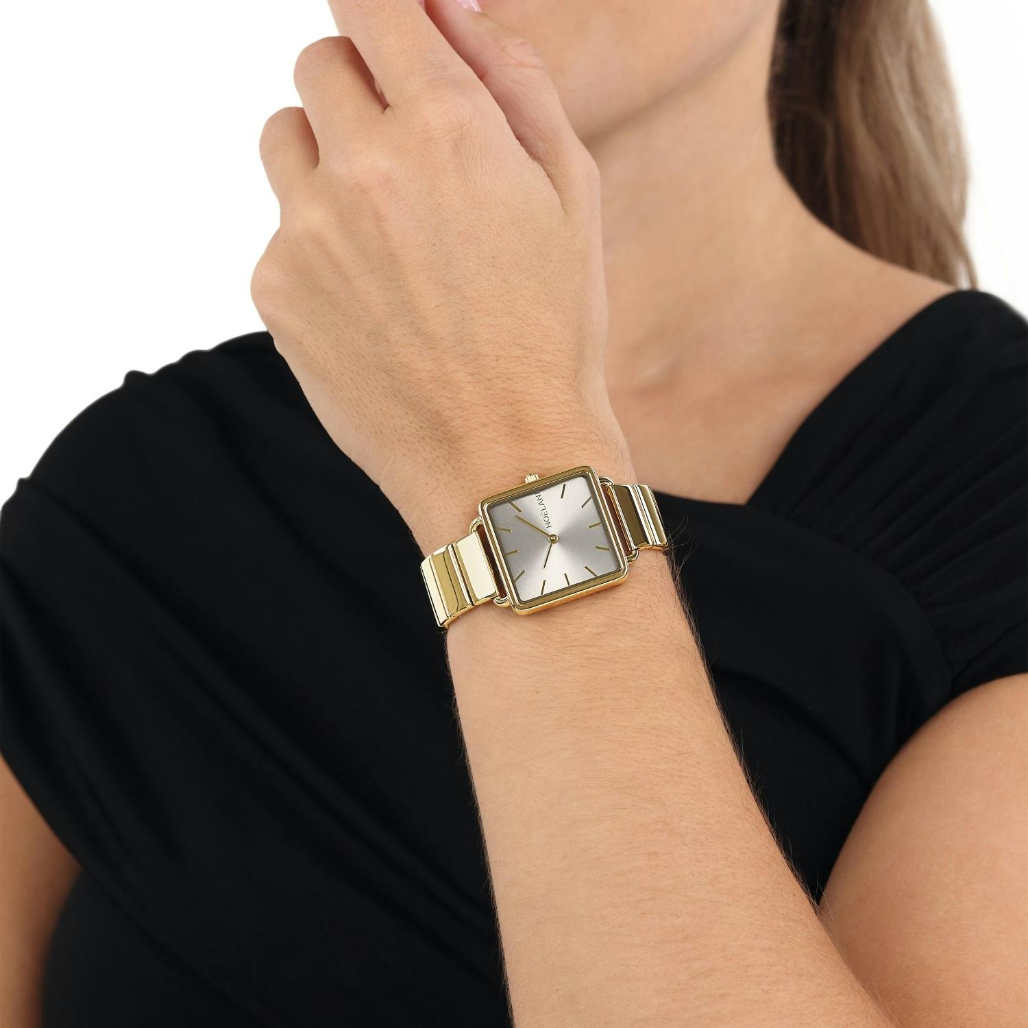 Diese NOELANI Damen Uhr ist das perfekte Accessoire für alle, die es chic und modern zugleich mögen. Die Kombination aus Glieder-Armband und einem Zifferblatt sorgt für einen zeitlosen Look, der sich frei kombinieren lässt. Entdecke hierzu unsere vielfältige Armketten Kollektion und matche deinen Auftritt! Die Uhr bis auf 3 Bar wasserdicht und wird in einer Schatulle geliefert.