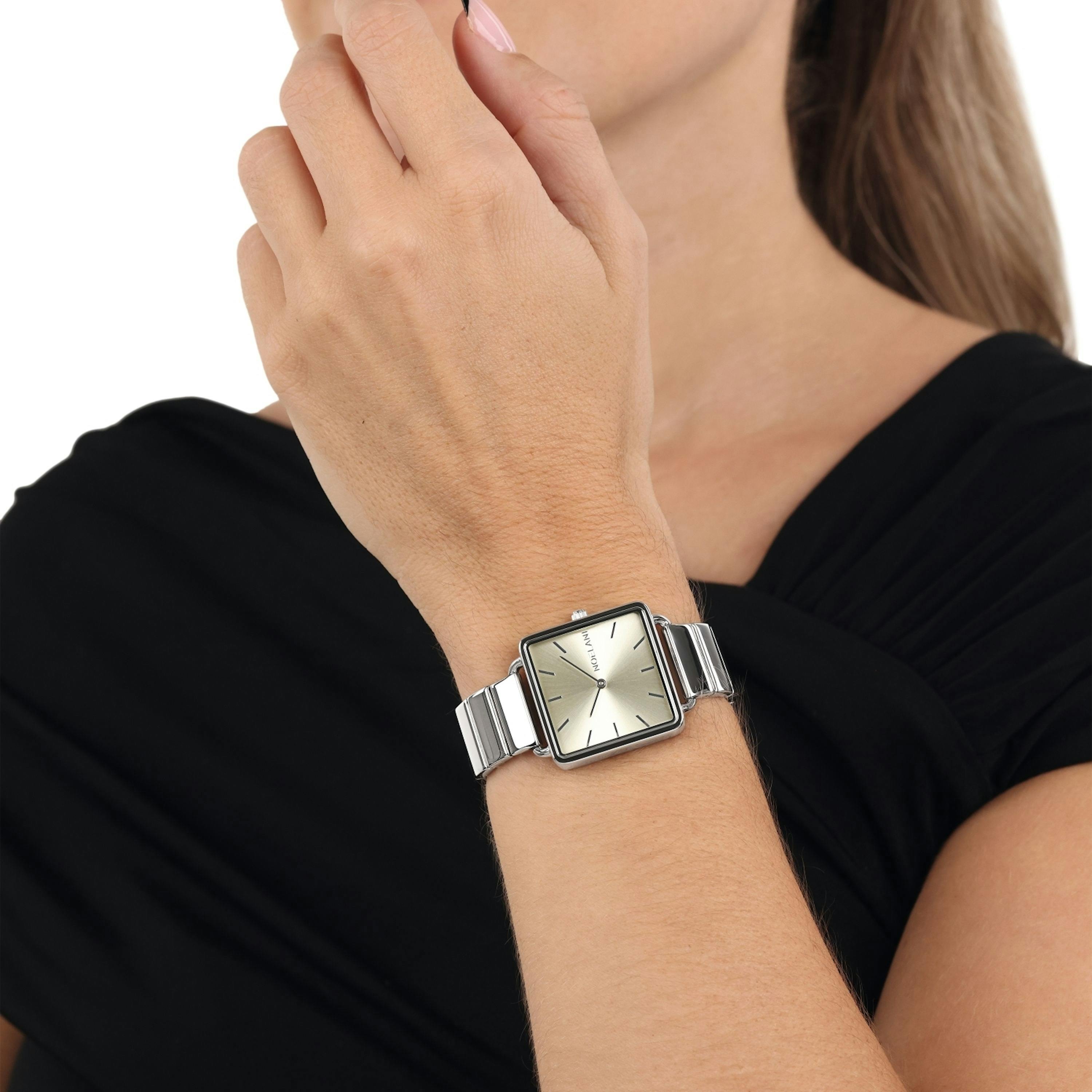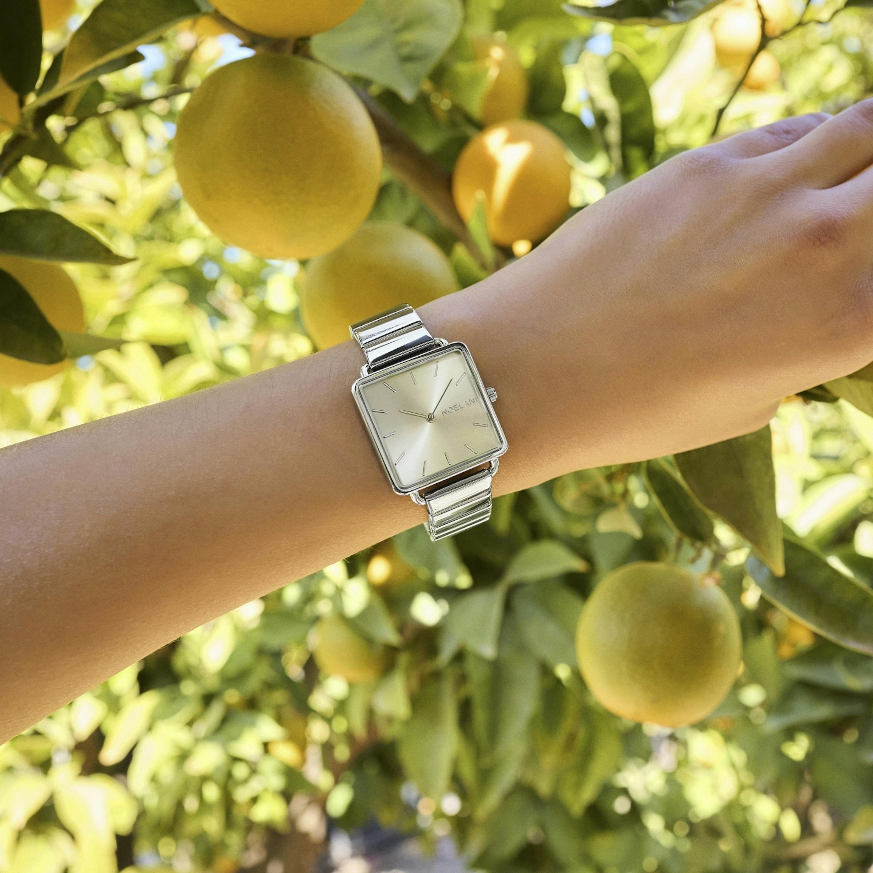 Diese NOELANI Damen Uhr ist das perfekte Accessoire für alle, die es chic und modern zugleich mögen. Die Kombination aus Glieder-Armband und einem Zifferblatt sorgt für einen zeitlosen Look, der sich frei kombinieren lässt. Entdecke hierzu unsere vielfältige Armketten Kollektion und matche deinen Auftritt! Die Uhr bis auf 3 Bar wasserdicht und wird in einer Schatulle geliefert.
