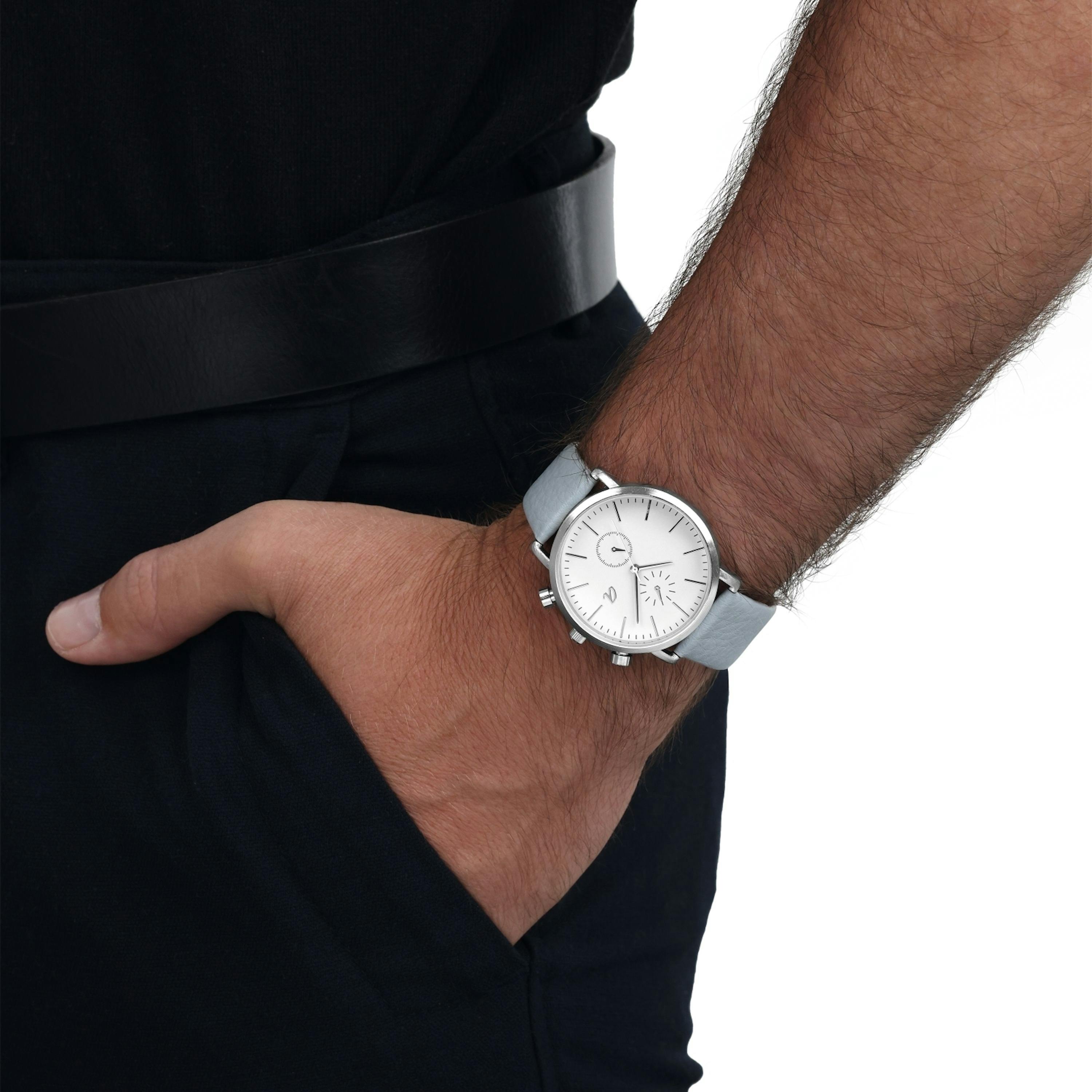 - IP beschichtetes Edelstahlgehäuse mit hochwertig verarbeitetem Armband aus veganem Apfelleder