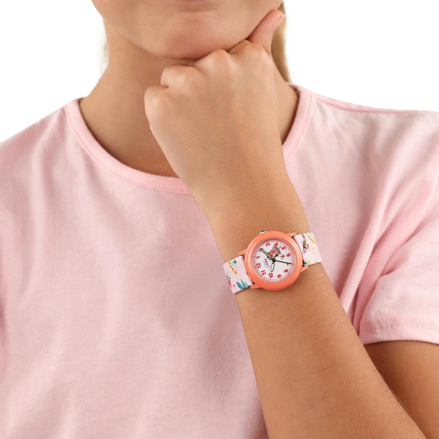 Willkommen in der Uhren Welt von Prinzessin Lillifee. Hier zeigen sich fröhliche Farben, bunte Motive und wichtiger Lernspaß für kleine Mädchen. Die perfekte Armbanduhr, die mitwächst und dabei den Gute-Laune-Faktor ans Outfit zaubert. Das matt gestaltete Gehäuse besteht aus hochwertigem Alloy und ist mit einem Farbspray veredelt. Die Krone, die zum Stellen der Uhr dient, besteht aus Edelstahl. Das längenverstellbare Textilarmband mit Tier- und Naturmotiven überzeugt durch die einfache Handhabe der Dornschließe. Hiermit lässt sich die Länge des Bands genau passend für das Handgelenk einstellen. Das kratzfeste Mineraglas schützt das fröhlich bunte Ziffernblatt, das die Zahlen deutlich inklusive Sekunden dazwischen anzeigt. Ein präzises Citizen Miyota Uhrwerk ist bis auf drei Bar wasserdicht und somit Spritzwassergeschützt. Jede Lillifee Uhr wird mit einer süßen Schatulle geliefert und eignet sich ideal als Geschenk.