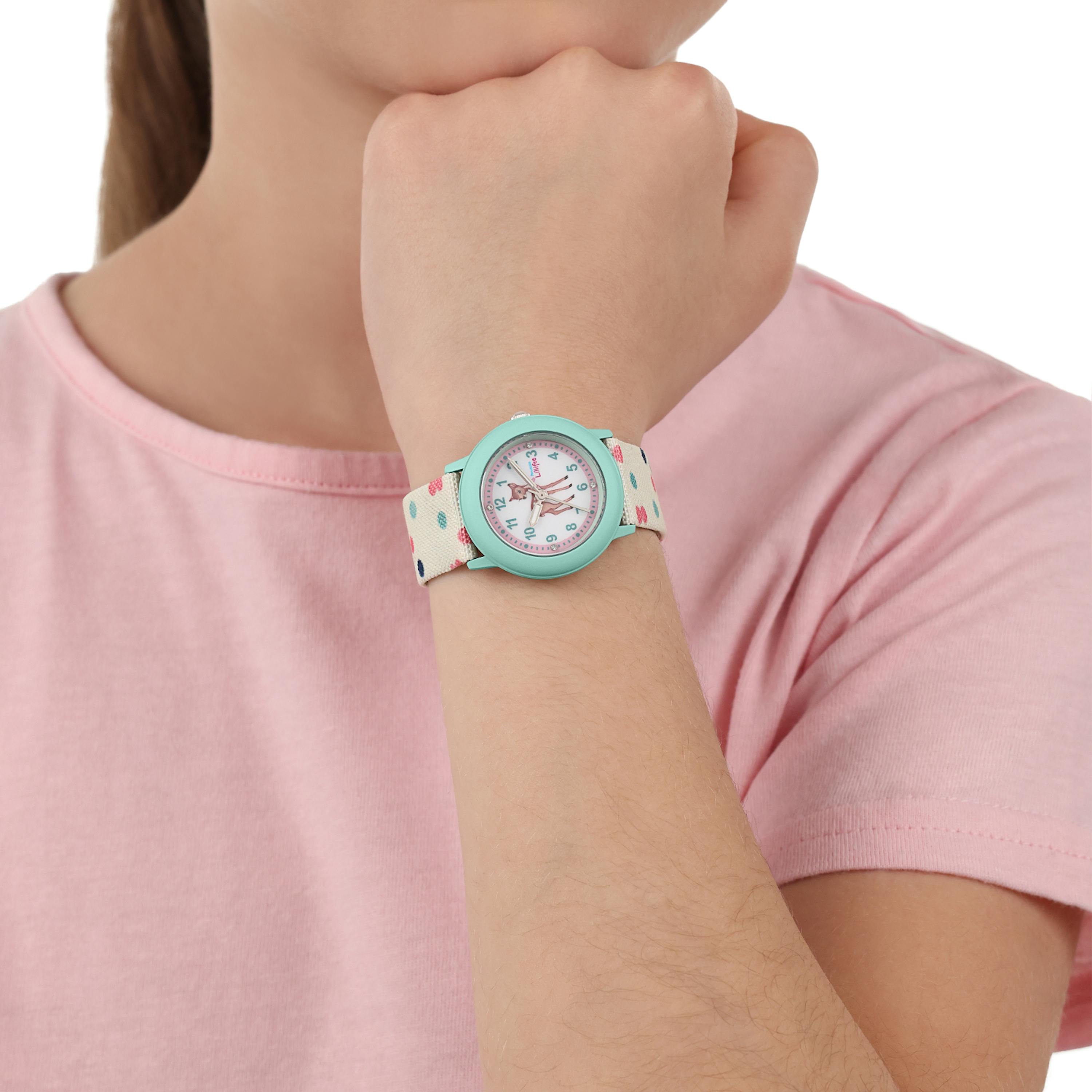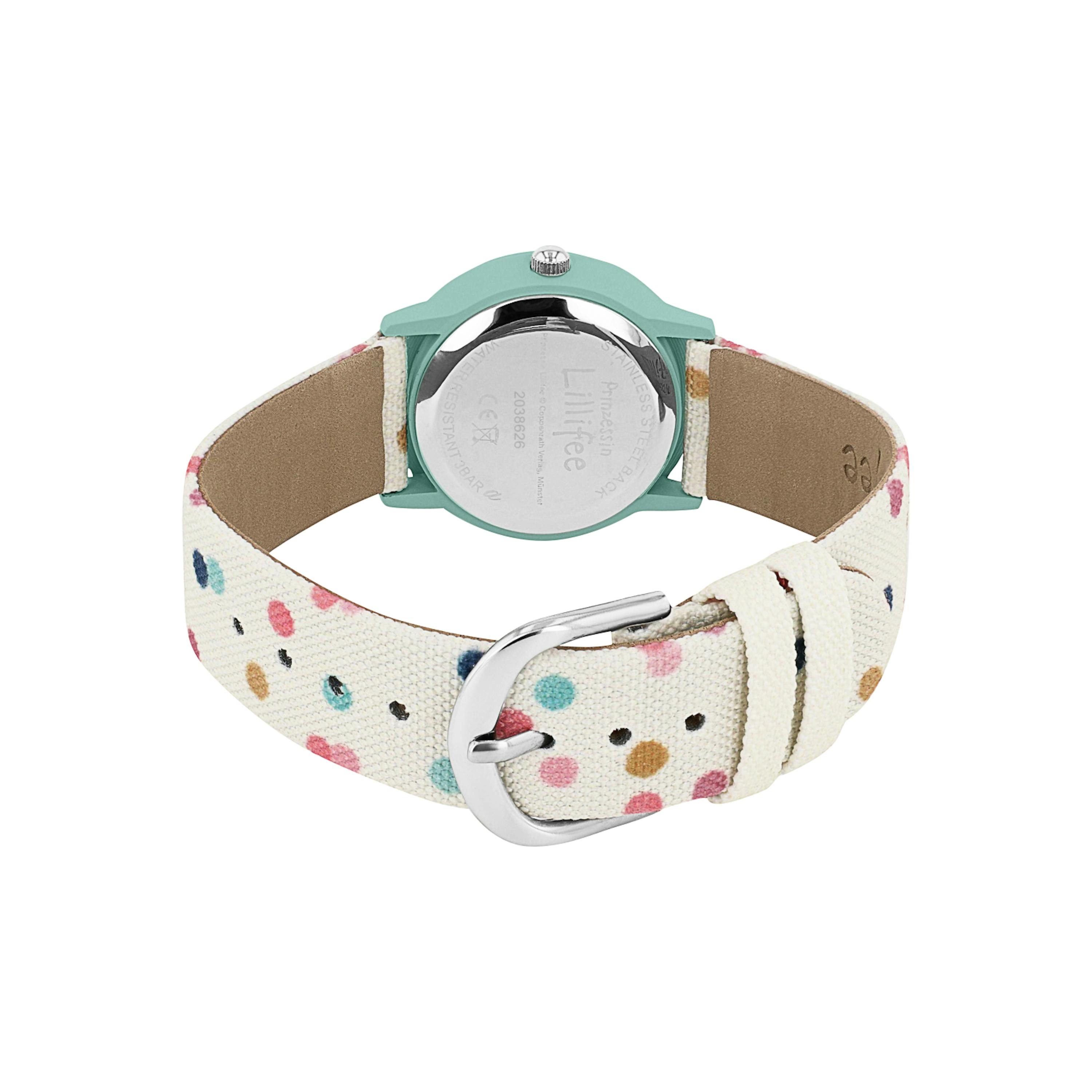 Für alle kleinen Mädchen, die fashion conscious sind: Diese Uhr ist ein Must-have! Qualität und Präzision zeichnen die Uhrenkollektion der Prinzessin Lillifee aus. Diese Uhr ist nicht nur bildhübsch, sondern auch praktisch: Das runde, matte Gehäuse ist spritzwassergeschützt und hat ein niedliches Rehkitz auf dem Ziffernblatt abgebildet. Die Uhr hat ein Gehäuse aus Alloy und ist mit einem Textil-Armband versehen. Das Mineralglas sorgt für hohe Qualität und das Citizen Miyota Uhrwerk garantiert gewissenhafte Zeitangaben. Der Dornverschluss macht das An- und Ablegen spielend leicht. Der Gehäusedurchmesser des Lernziffernblatts beträgt ca. 29 mm, wodurch die kleine Prinzessin die arabischen Zahlen besonders deutlich lesen kann. Funkelmomente: Vier Kristalle synth. zieren das Lernziffernblatt. Alle Armbänder sind stets einfach zu schließen und längenverstellbar, sodass sie mitwachsen und passgenau eingestellt werden können. Durch das robuste Material des Bands kann die Uhr sorglos beim Spielen und Toben getragen werden. Die Uhren-Kollektion der Marke Prinzessin Lillifee umfasst bis auf drei Bar wasserdichte Modelle. Jede Lillifee Uhr wird mit einer süßen Schatulle geliefert und eignet sich ideal als Geschenk.