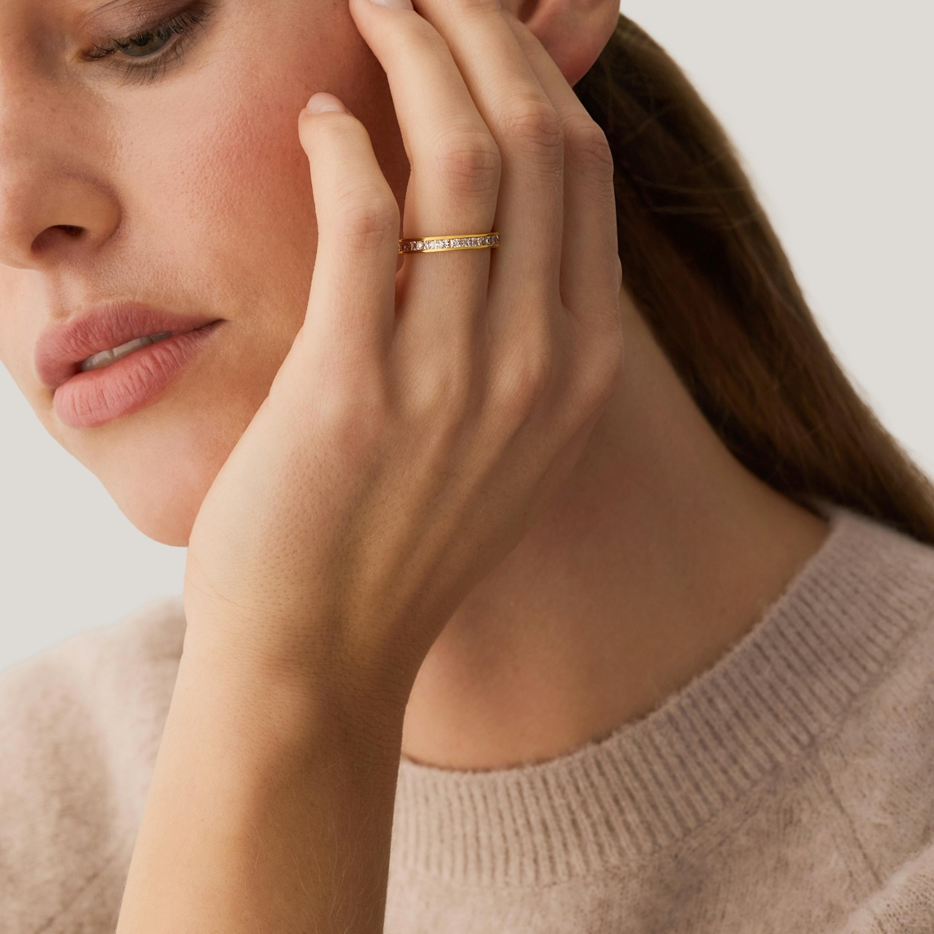 - Zirkonia (synth.) Steine in Kanalfassung zieren den hochglanzpolierten Frauen Freundschaftsring