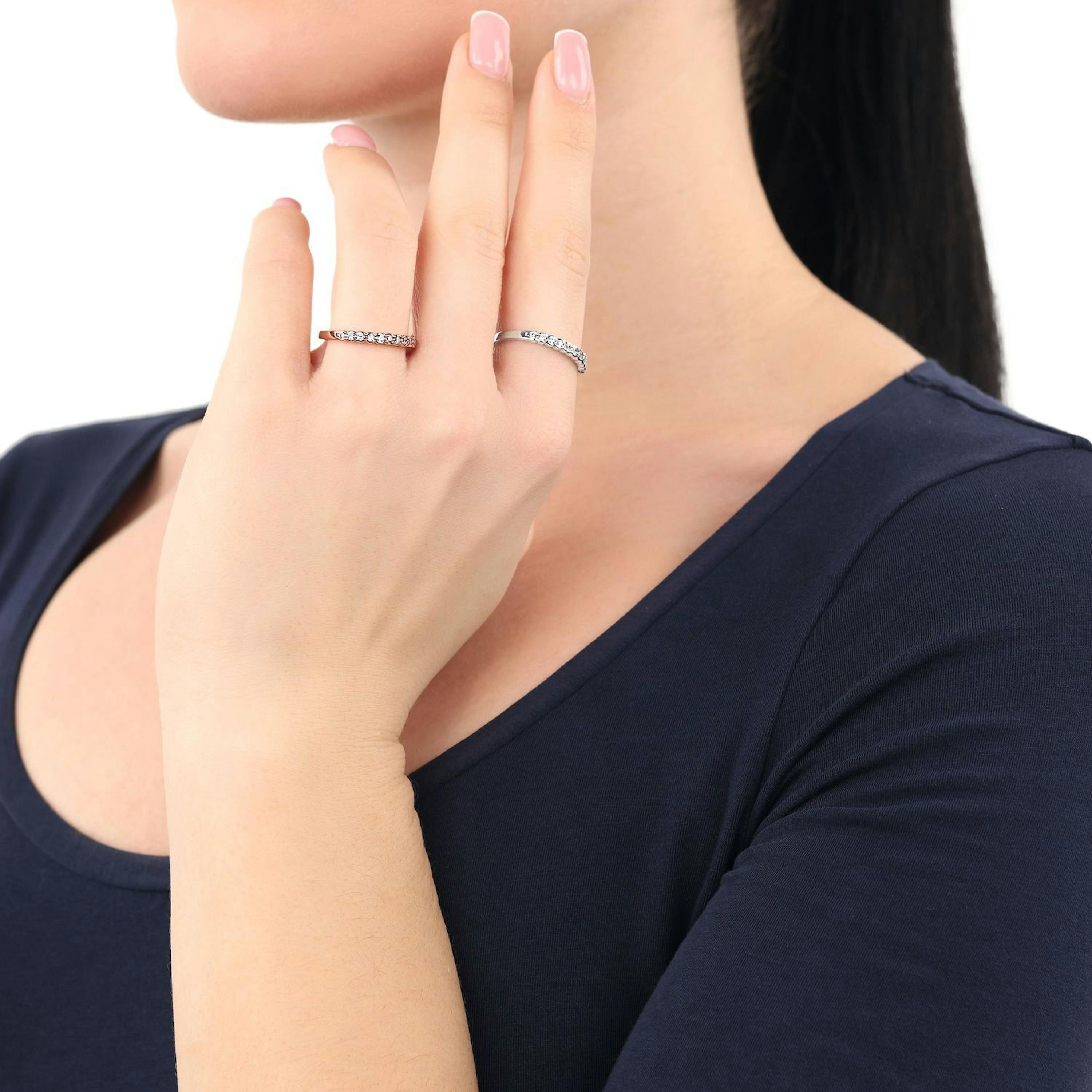 Cooler Doppellook für die Dame. Die Echtschmuckmarke Amor kreierte diesen zweifarbigen Damen Ring, bestehend aus 925 Sterling Silber und hell strahlenden Zirkonia (synth.).
