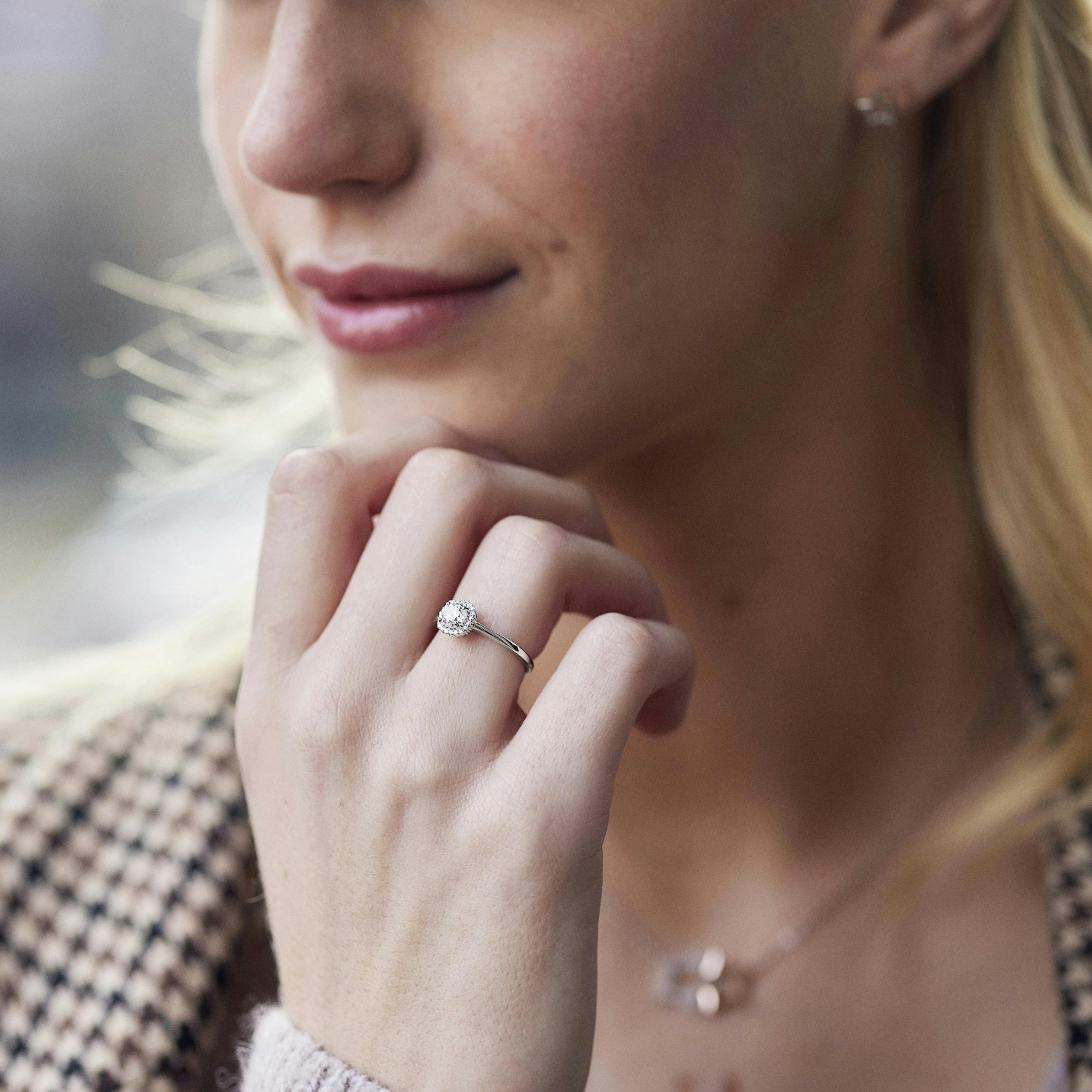 - Eyecatcher am glänzenden Fingerschmuck ist der dominante, strahlende Zirkonia Stein, welcher von weiteren 20 strahlenden Steinen umgeben ist. Kommt in passender Schmuckbox