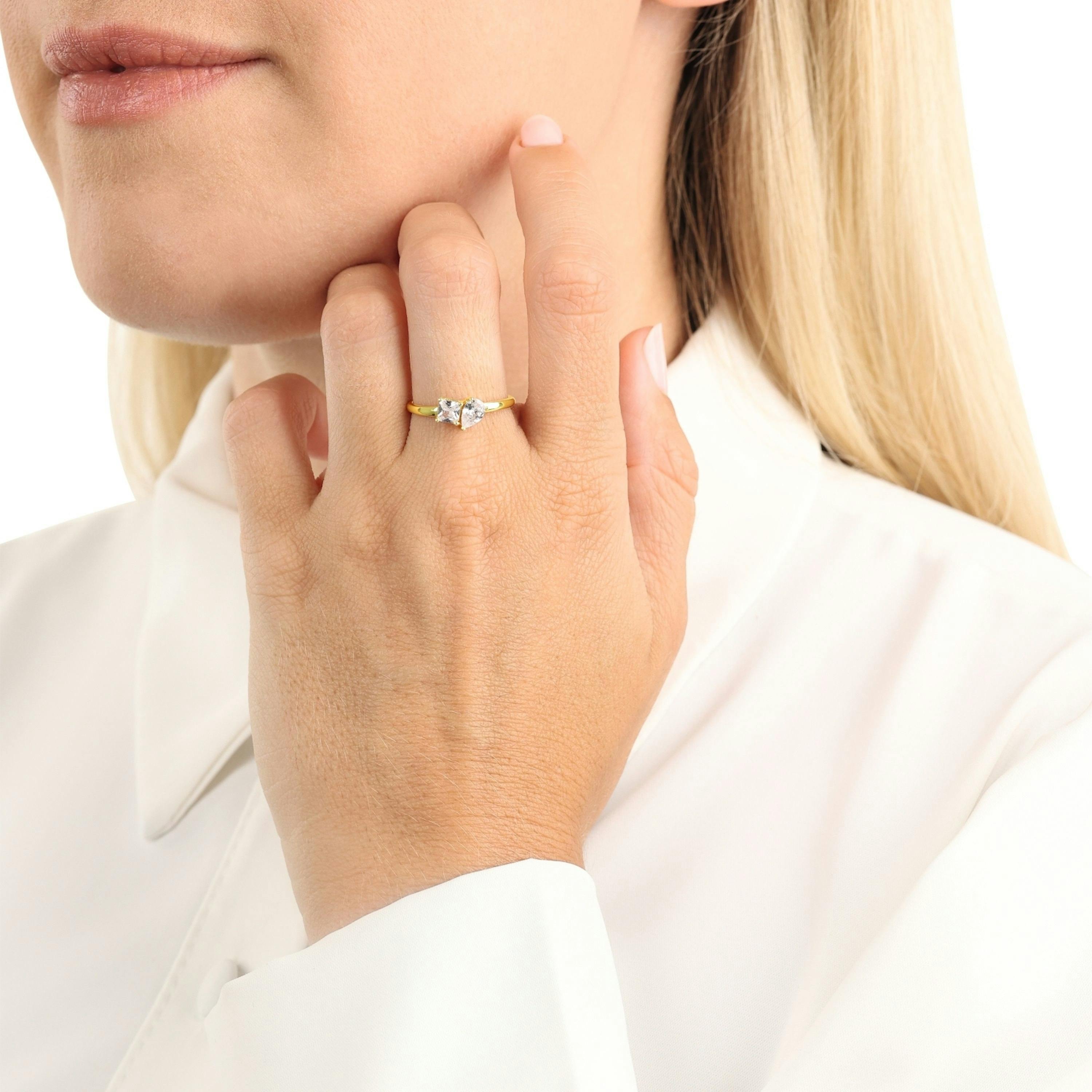 - Damen Ring der Echtschmuck-Marke Amor mit einem Quader und Tropfen Zirkonia (synth.) Stein besetzt
