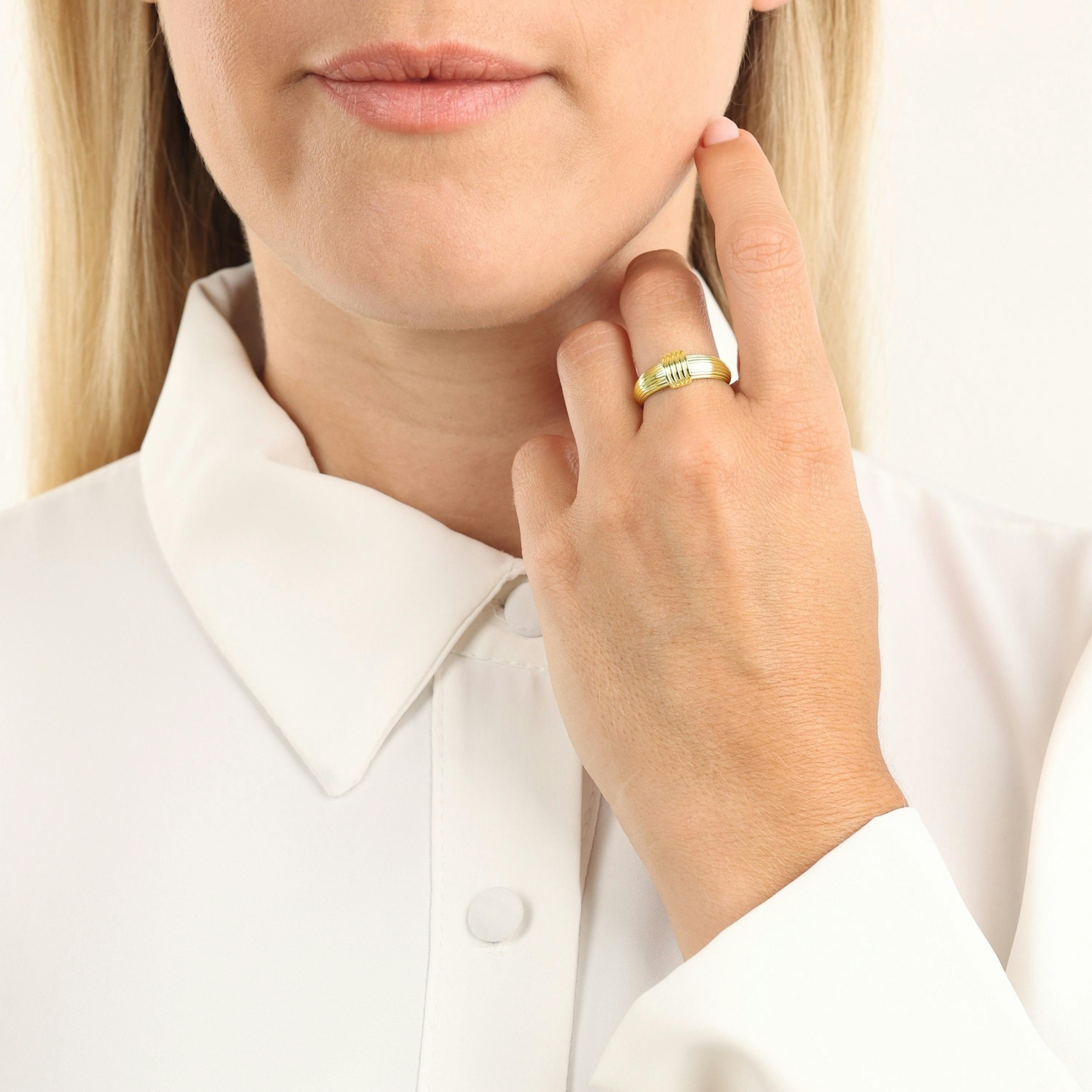 - Der außergewöhnliche Goldring ist ein dominanter Hingucker und kommt in passender Schmuckbox