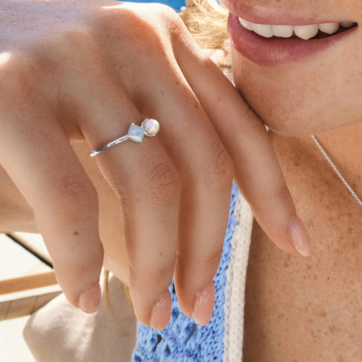 - Der Fingerschmuck besteht aus 925 Sterling Silber und ist mit synth. Schmuckstein sowie Süßwasserzuchtperle geschmückt