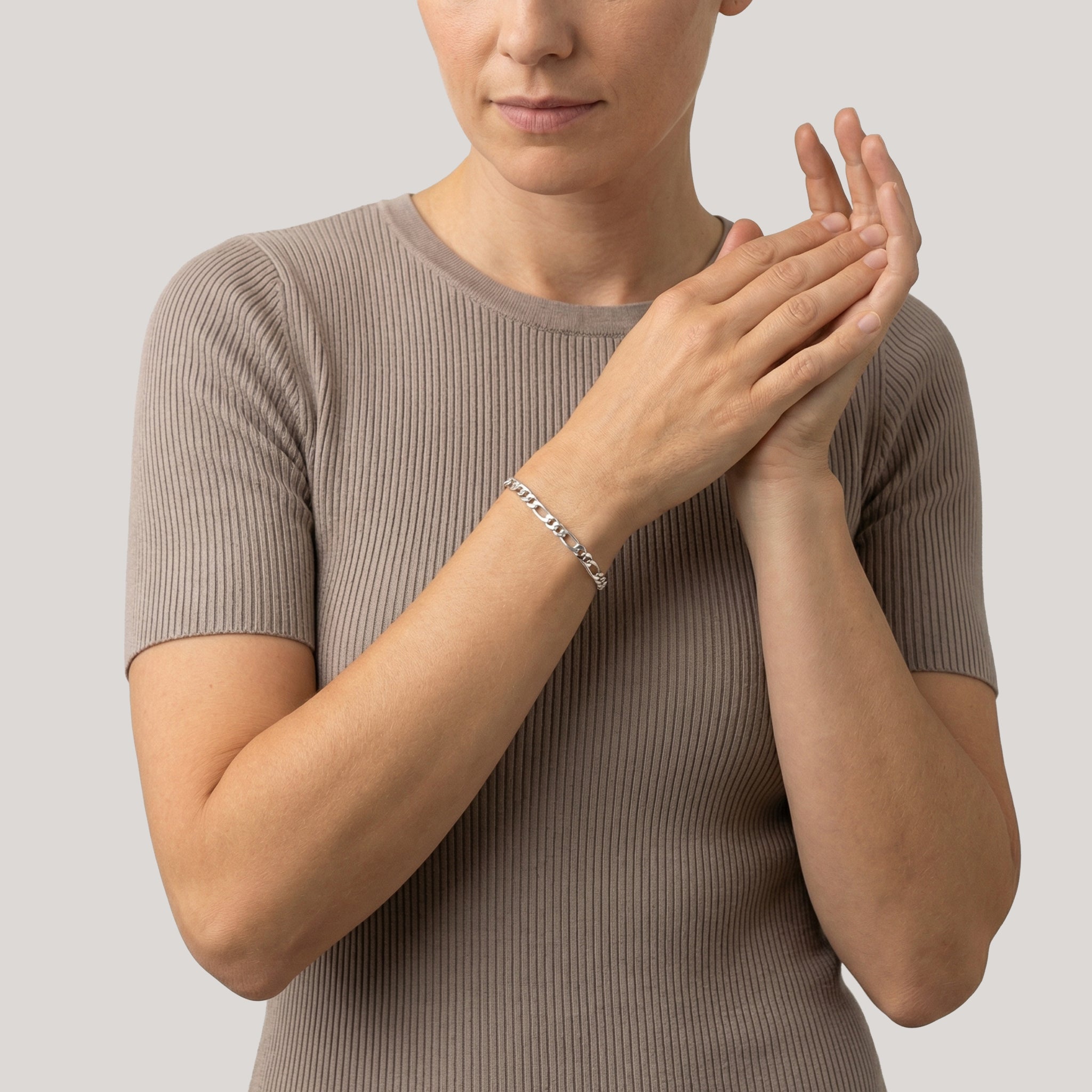 Hier präsentiert sich eine schlichte und dadurch wunderbar kombinierbare Armkette aus 925 Sterling Silber. Das hochwertig verarbeitete Schmuckstück ist besonders langlebig und ein funkelnder Hingucker am Arm von Mann und Frau.