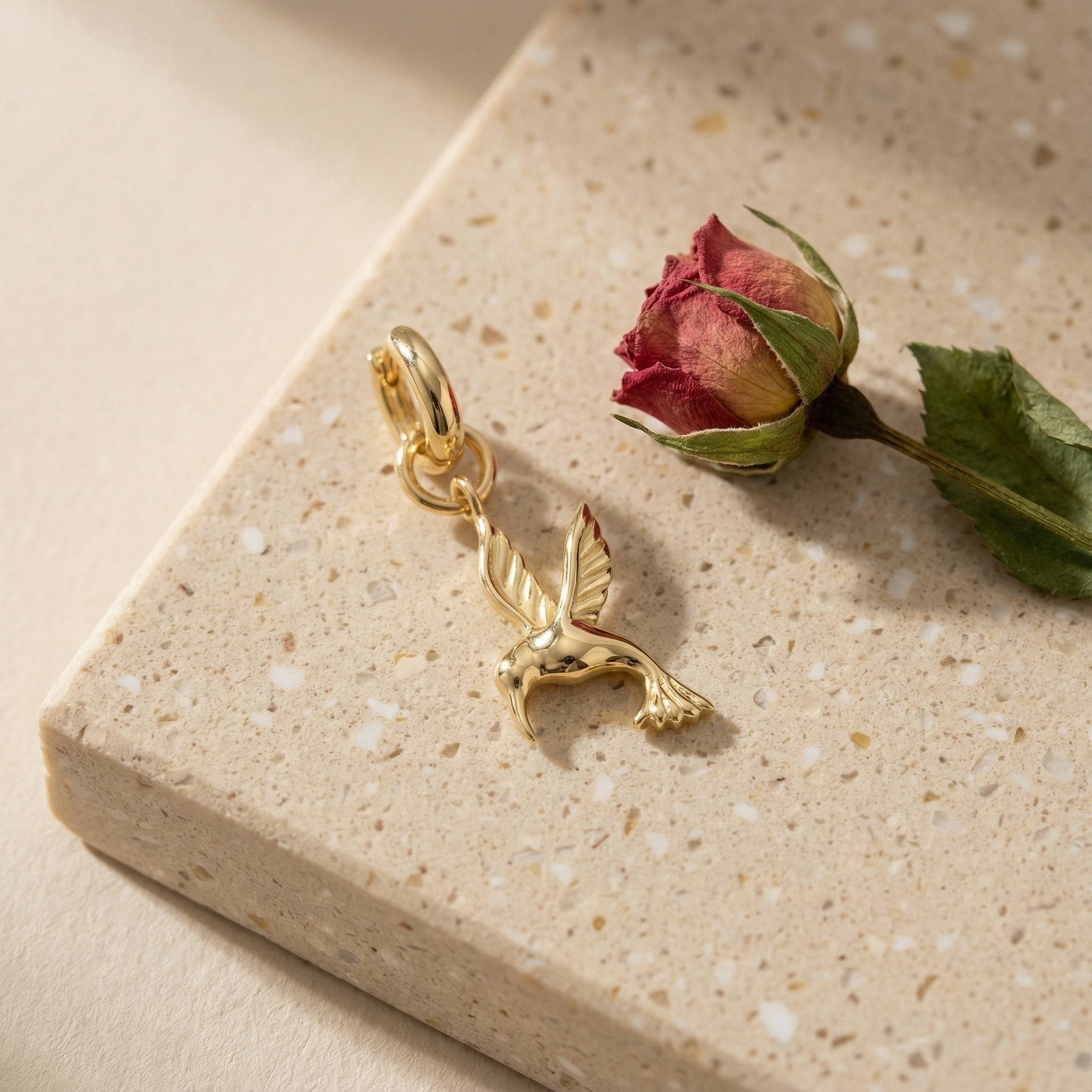 Der Charm-Anhänger der bekannten Echtschmuckmarke Amor ist ein wahrliches Must-Have für Frauen und ein wahrer Blickfang. Das Schmuckstück in Form eines Kolibris ist aus 925 Sterling Silber gefertigt und besticht durch seine glänzende Oberfläche. Dank des Mottos 'One Charm for All' kann der Charm auf verschiedene Weise getragen werden. Durch seine hochwertige Verarbeitung und den bequemen Tragekomfort ist der Anhänger für Damen ein perfektes Accessoire. Mit einer Anhängerlänge von 24 mm und einer Breite von 9 mm ist es eine stilvolle Ergänzung für Frauen, die auf der Suche nach einem feinen Accessoire sind. Die Amor Charms Kollektion lässt sich mit Halsketten, Colliers, Armbändern sowie Fußketten und Creolen frei kombinieren und erweitern. Achte hierfür auf die passenden Maße, um die Öse der Anhänger anzubringen. Der bewusst gewählte Sicherheitsverschluss mit kleiner Nase zum Öffnen sorgt dafür, dass die Charms sicher an ihrem Platz bleiben. Die Amor Schmuckkreation wird in einer ansprechenden Schatulle geliefert, die sich hervorragend zum Aufbewahren sowie Verschenken eignet. Im Lieferumfang enthalten ist nur der Artikel aus dem Titel und nicht etwa weiteres Schmuckzubehör, das zur bildlichen Veranschaulichung verwendet wurde.