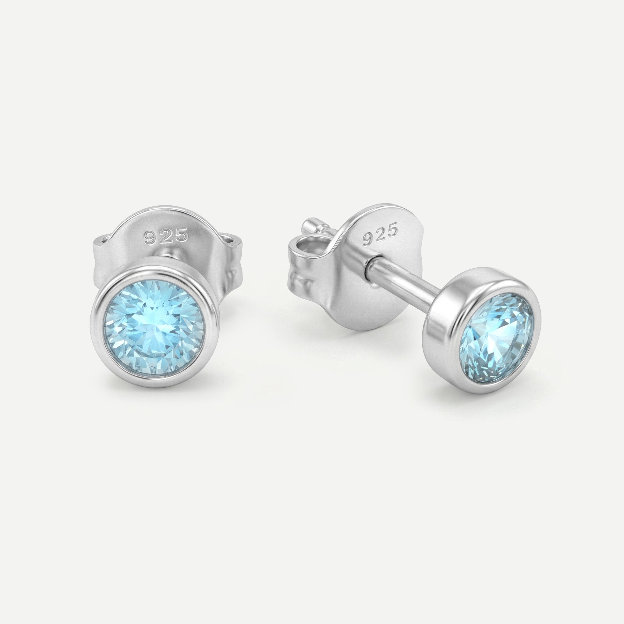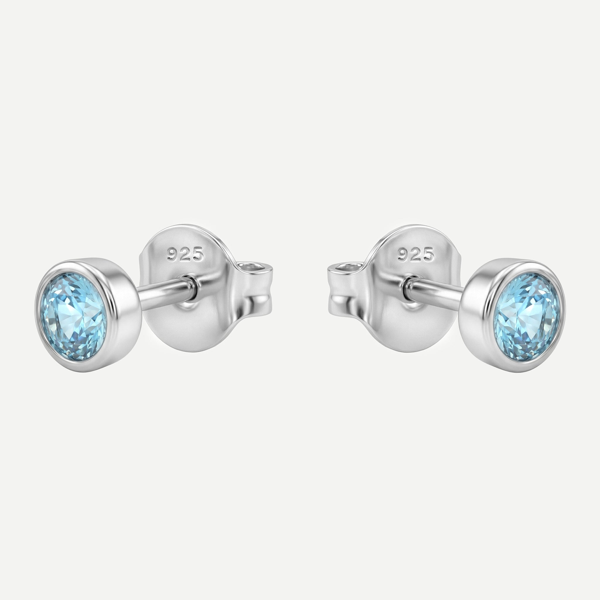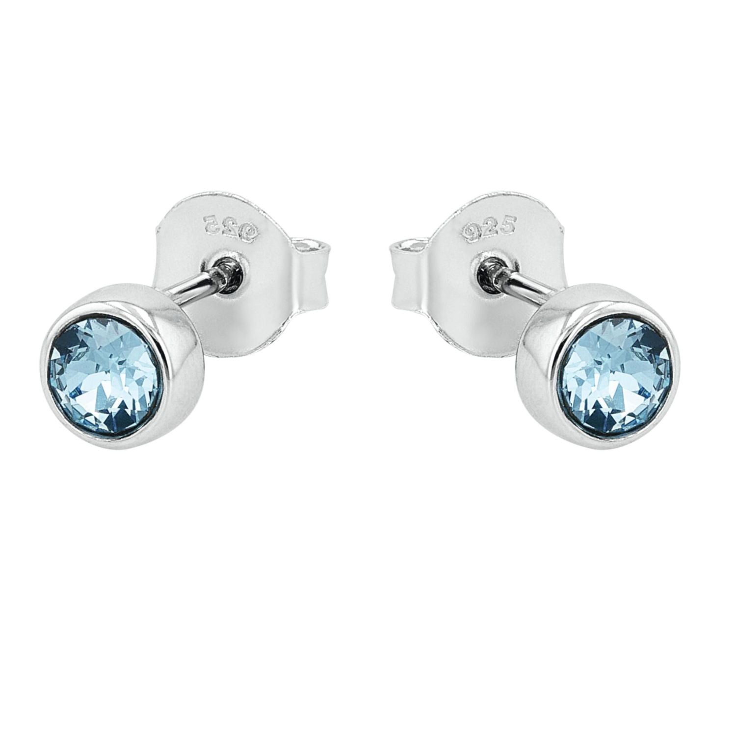 Diese 6 mm großen klassischen Ohrstecker bestehen aus 925 Sterling Silber und sind mit farbigen Kristallen veredelt.