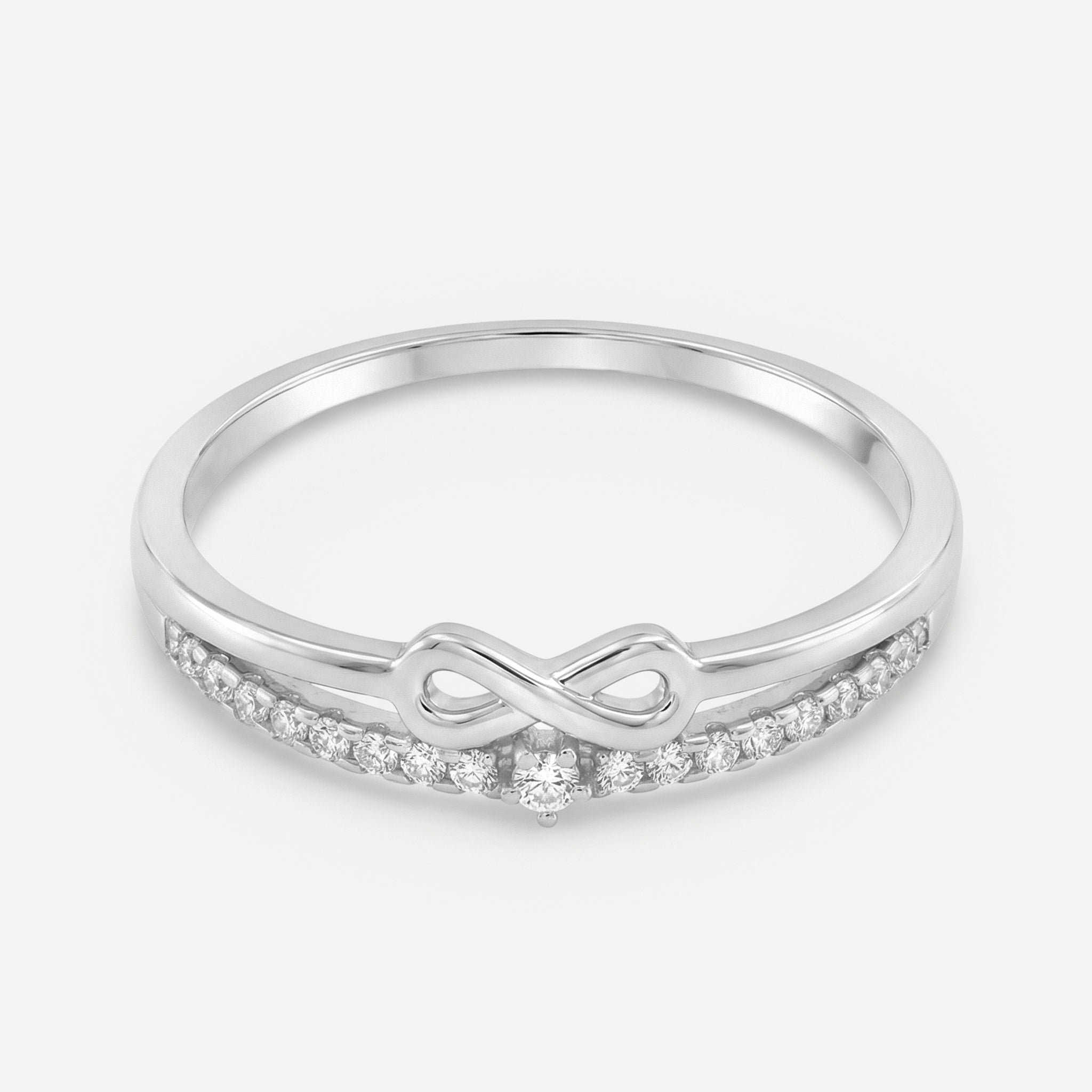 Frauen Ring mit Stein von der bekannten Echtschmuck-Marke Amor. Wunderbarer Damen Ring aus glänzendem 925 Sterling Silber. Der Fingerschmuck gefällt im zweireihigen Design - Zirkonia (synth.) Steine sowie ein filigranes Unendlichkeitssymbol zieren das Accessoire. Hochwertiges Material und somit kein Abfärben. Das Schmuckstück eignet sich hervorragend als Verlobungsring und sendet liebliche Botschaften beim Tragen. Natürlich darf der Ring auch als Freundschaftsring verschenkt werden, hierfür kommt er in passender Schmuckbox. Das Infinity Zeichen: der Liebling unter den Schmucksymbolen. Handschmuck Breite ca. 7 mm.