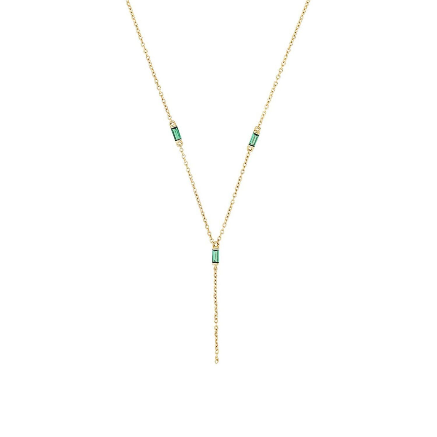 Halskette für Damen von Amor. Diese trendy Damen-Halskette von der bekannten Echtschmuck-Marke Amor überzeugt im angesagten Y-Design. Die Halskette Damen Gold ist längenverstellbar (42+3 cm) und passt sich somit bequem deinem Outfit und Anlass an. Das besondere Highlight der Echtschmuck-Halskette Gold Damen sind die 3 strahlenden Zirkonia Steine in sattem Smaragdgrün. Die Schmucksteine am Halsschmuck kommen im angesagten Baguette-Schliff. Die Damenhalskette im coolen Y-Design eignet sich für das Tragen im Alltag, kann aber auch gerne zu der Abendgarderobe oder dem Office-Look kombiniert werden. Entdecke außerdem ergänzen zu der Halskette für Frauen aus 925 Sterling Silber die passenden Ohrstecker und Armband und komplettiere so deinen Look. Die Halskette Damen kommt in einer passenden Schmuckbox und eignet sich somit auch perfekt als Geschenk zum Geburtstag, Jahrestag oder Weihnachten.